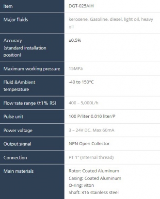 Flow Sensor รุ่น DGT-025AIH (Aluminium High Pressure)